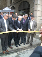 Un cop acabat tot l'acte de parlaments i fotografies al Consell, la comitiva política ha posat rumb al Portal del Pont, on s'ha fet l'acte d'inaguració de la fira amb la ja tradicional "tallada de cinta".